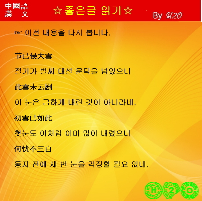 #1608강 한시(漢詩)로 배우는 漢文과 중국어 ★十一月三日 大雪 - 李奎報 - 3