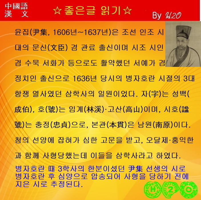 | 한시(漢詩)로 배우는 漢文과 중국어 - 1620 ★元日夕書懷 - 徐居正 - 1 (0) | 2026.01.01 |