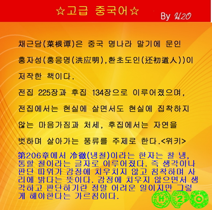 #1639강 명문장으로 배우는 漢文과 중국어 - 菜根譚 206章
