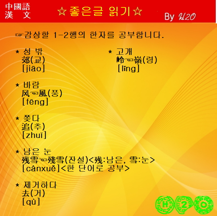 | 한시(漢詩)로 배우는 漢文과 중국어 - 1645 ★雨水時節 - 劉辰翁 - 2 (0) | 2026.02.20 |