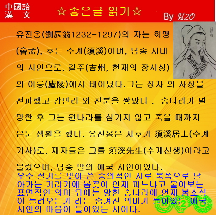 #1645강 한시(漢詩)로 배우는 漢文과 중국어 ★雨水時節 - 劉辰翁 - 2
