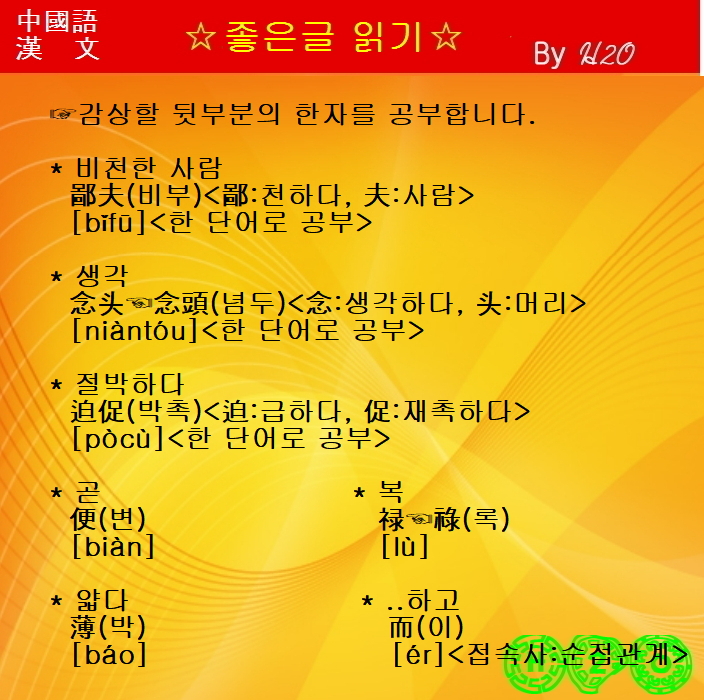 좋은 글을 한문으로 읽어 마음과 정신의 풍요로움을...