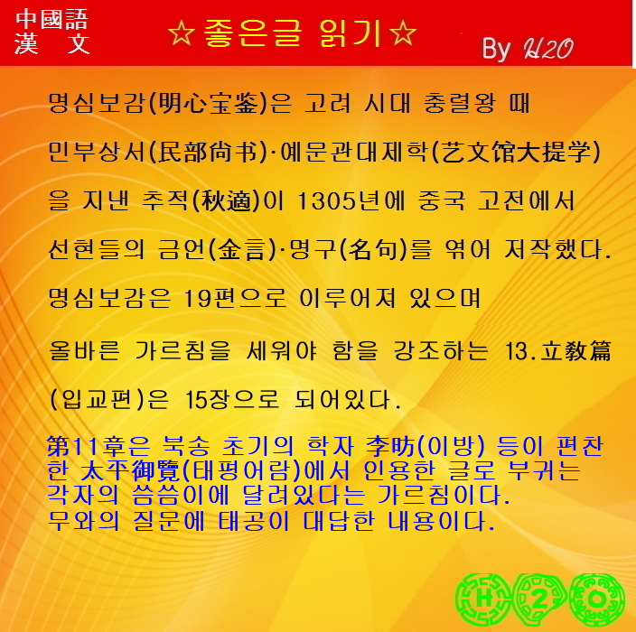 | 명문장으로 배우는 漢文과 중국어-1658 明心寶鑑 12.立敎篇 - 第11章-1 (0) | 2026.03.16 |