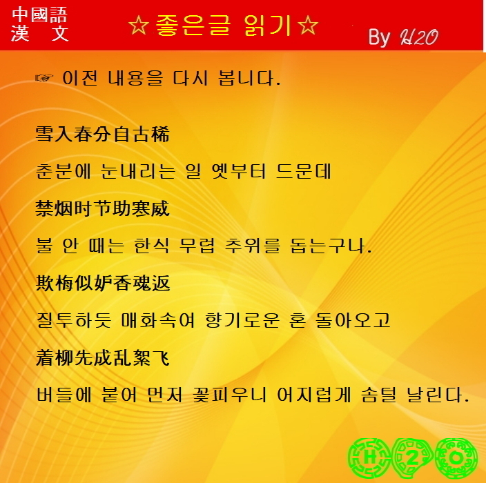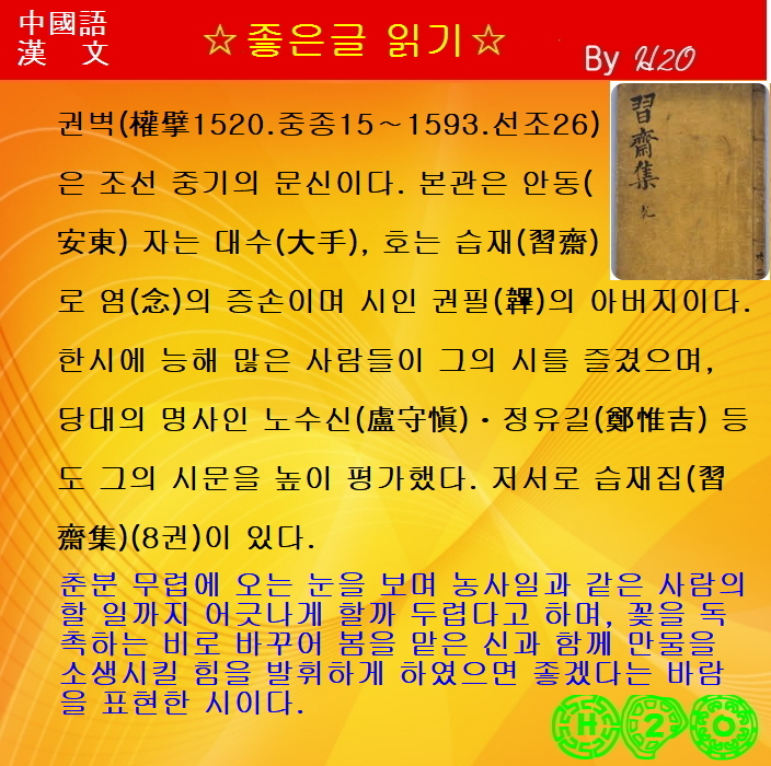#1663강 한시(漢詩)로 배우는 漢文과 중국어 ★春分後雪 - 權擘 - 3