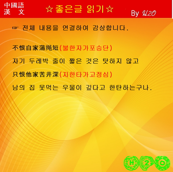 자기 두레박 줄이 짧은 것은 탓하지 않고