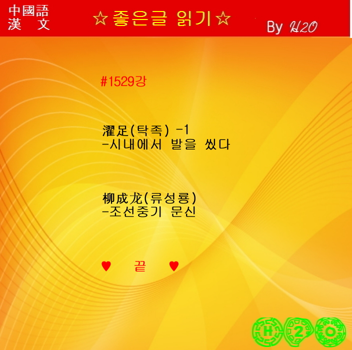 한시(漢詩)로 배우는 漢文과 중국어 - 1529 ★濯足 - 柳成龍 - 1