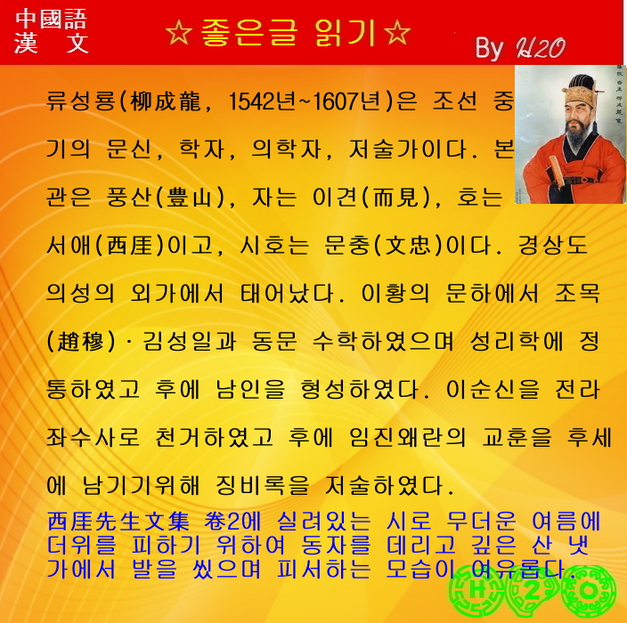 #읽어주는_漢詩-412 ★濯足 - 柳成龍