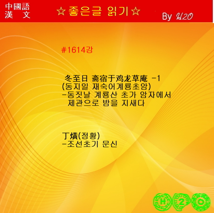 #1614강 한시(漢詩)로 배우는 漢文과 중국어 ★冬至日 齋宿于鷄龍草庵 - 丁熿 - 1